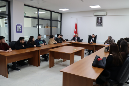 Yüksekokul Müdürümüz Dr. Öğr. Üyesi Osman KOYUNCU, ziyaretten duyduğu memnuniyeti dile getirerek nazik ziyaretleri ve iyi dilekleri için konuklara teşekkür etti.